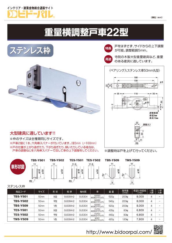 重量横調整戸車22型 丸型・ステンレス車 (TBS-Y501)