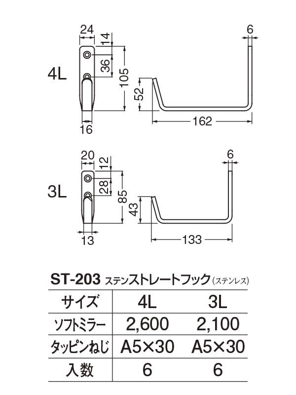 ST-203 ステンストレートフック ソフトミラー 4L