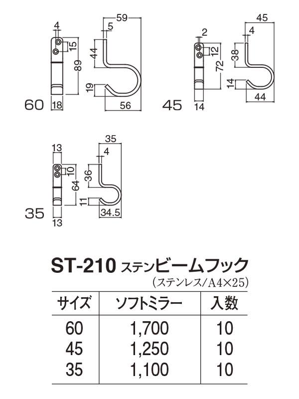 ST-210 ステンビームフック ソフトミラー 60mm