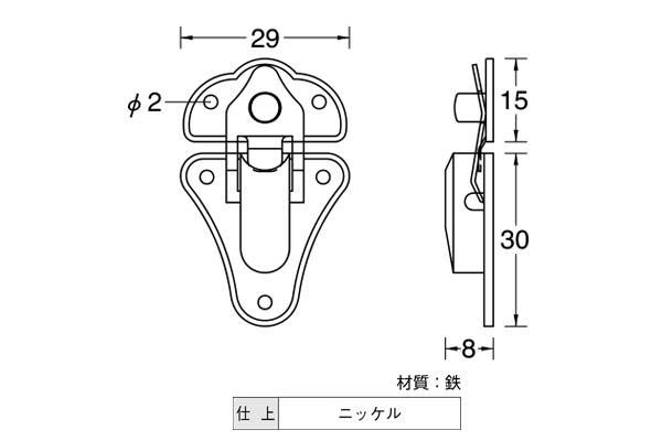 扉や蓋を開かないようにする留め金の一種、パッチン錠です。