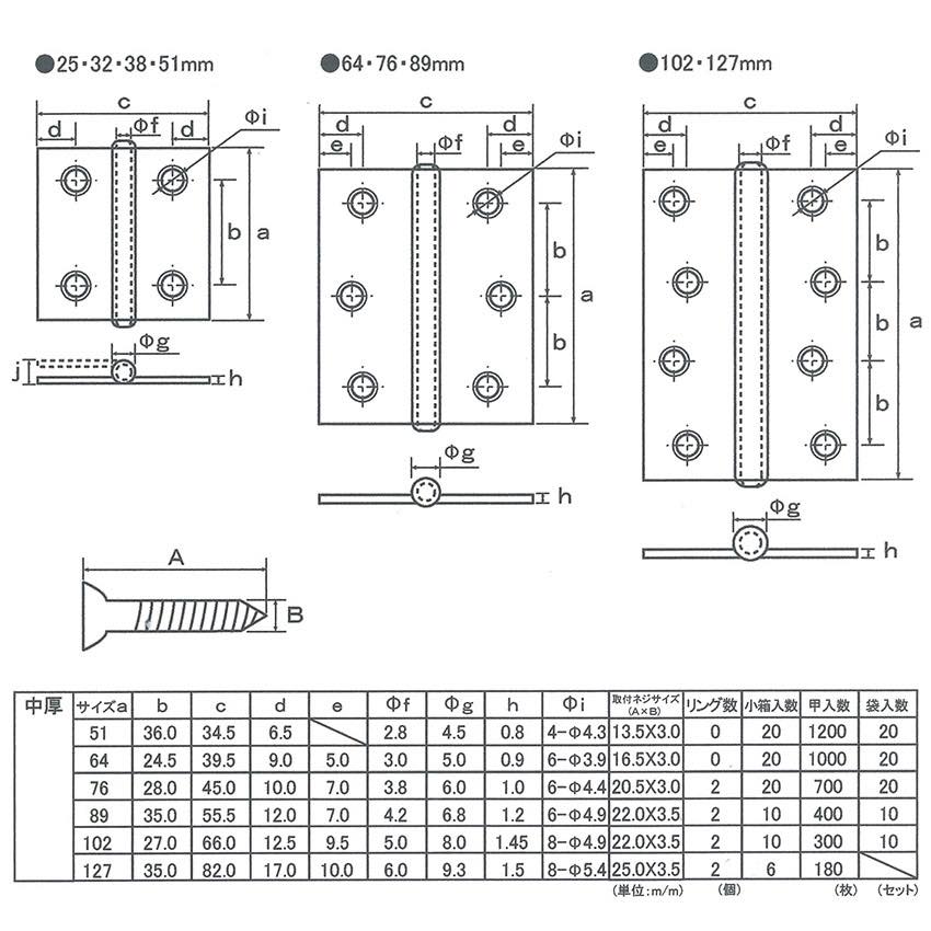 関連商品ステンレス丁番 中厚 ナイロンリング入 HL (… 51mm (コード11124)