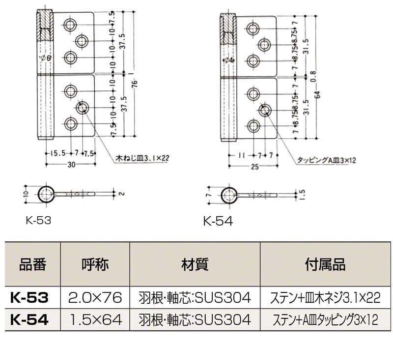 関連商品check ステンレスフラッグヒンジ(6つ穴) ヘ… 1.5×64 (K-54 HL)