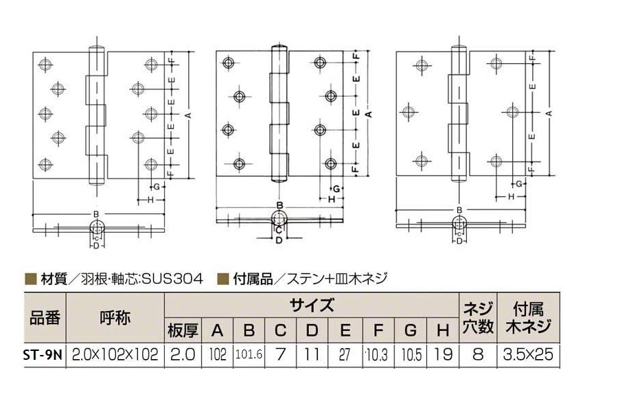 クマモト,義星丁番(リング無),ステンレス,黒/GB/茶系,,102×102mm,2.0mm,,,,,,,,,,,,,