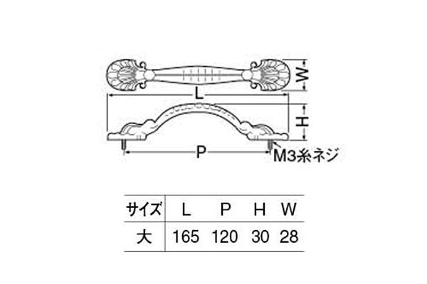 糸ネジ止め方式の小型取手。