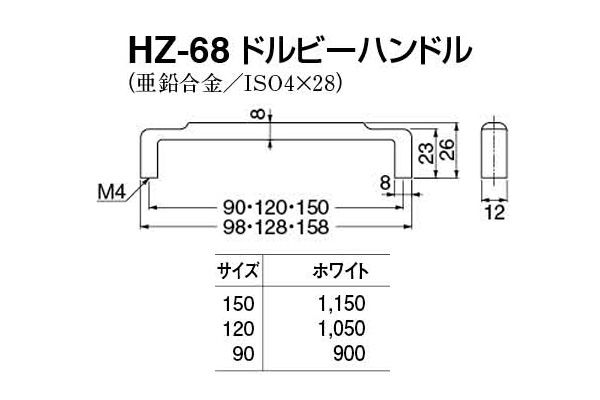 HZ-68 ドルビーハンドル ホワイト 90mm(ピッチ90)