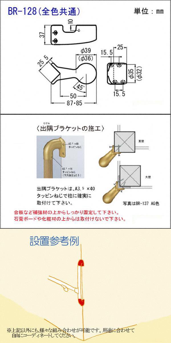 関連商品BR-128-AG E形ブラケット出隅止 35φ