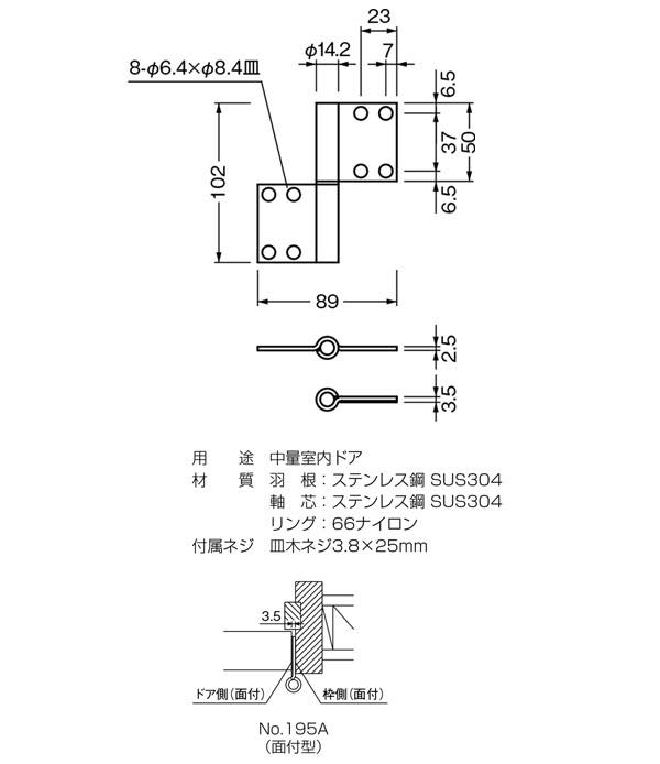 No.195A ノイズレス旗蝶番(面付型) ヘアライ… ‐ (コード195A-1)