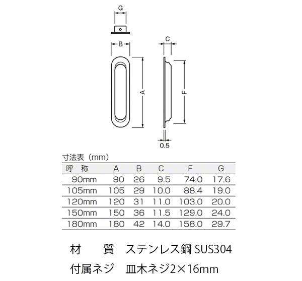 ステンレス鋼(SUS304)製の引手です。