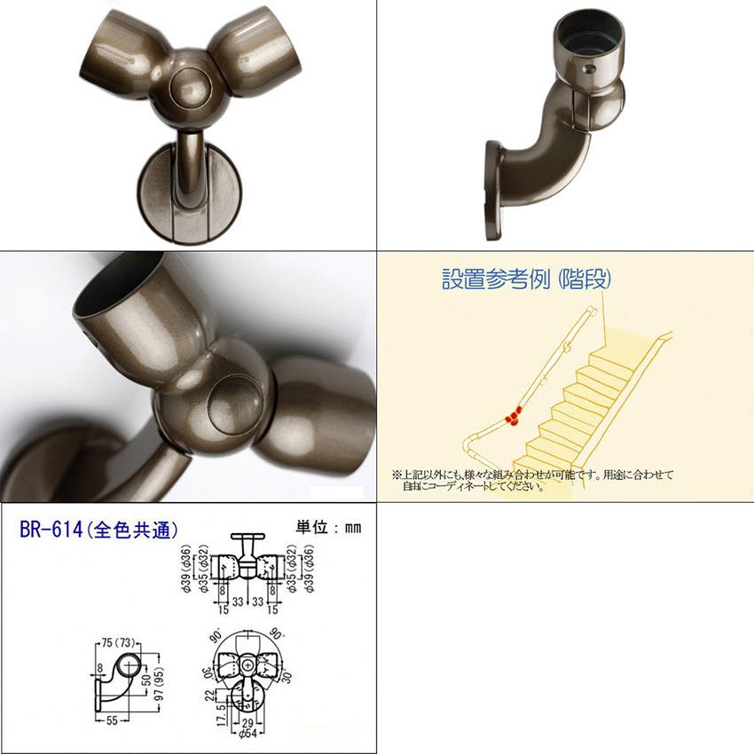 シロクマ製、室内用手すりブラケットのジョイント部品です。適応丸棒サイズは35φと32φ。