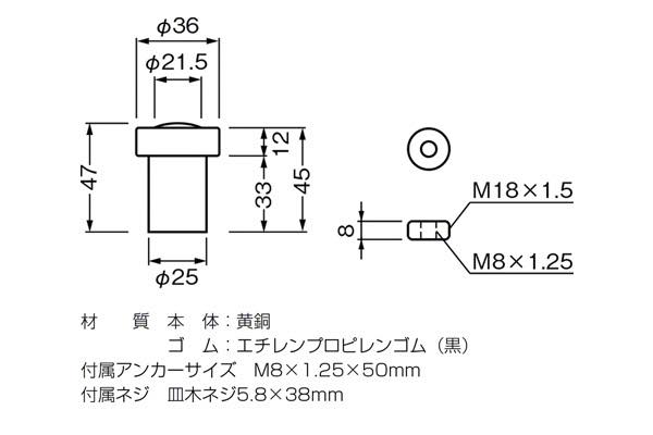 本体が黄銅製のゴム戸当りです。