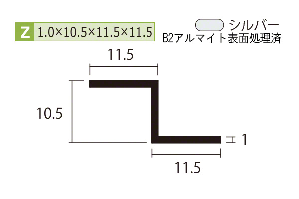アルミZ型バー(厚み1.0) B2シルバー 1.0×10.5×11.5×11.5mm (長さ1.6m×2本)