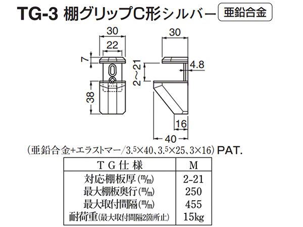TG-3 棚グリップC形 シルバー Mサイズ (対応棚板厚2-21mm)