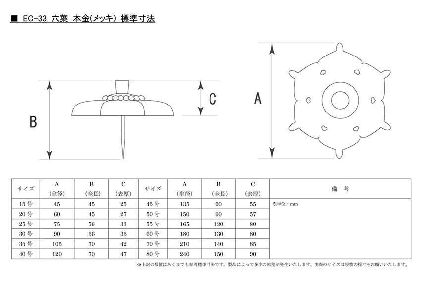 釘隠し(六葉),金,BIDOOR(ビドー),1寸5分 (約46mm),,,,,,,,,,,,,,,,