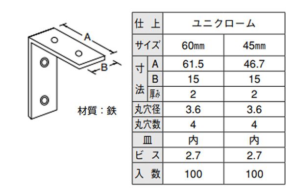 45mm (ビス別売) | 100 個 | @ 110 円 | @ 46 円 | ログイン後に表示 | 個 | 標準A |