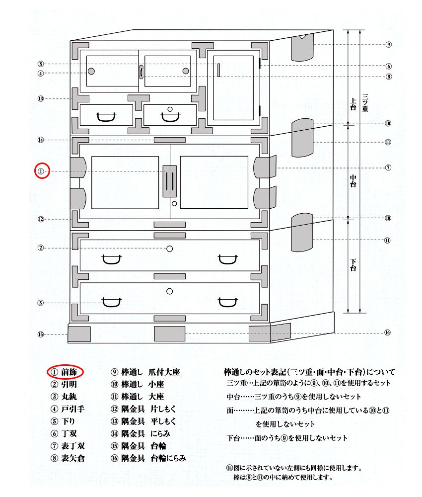丸型飾りは伝統家具の顔とも言える装飾金物です。取り付け位置の例は画像をご参照ください。