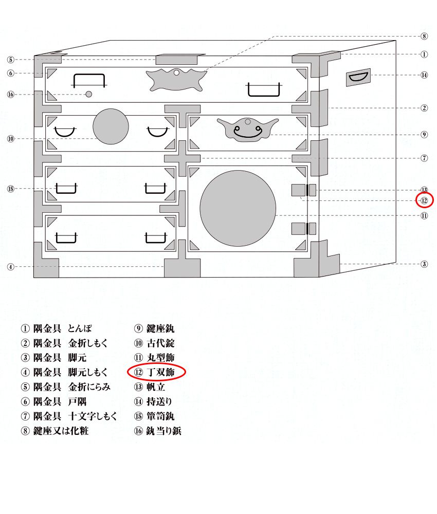 和風箪笥・家具金物メーカーとして名高い「西川商店」ブランドの丁番飾り帆立。