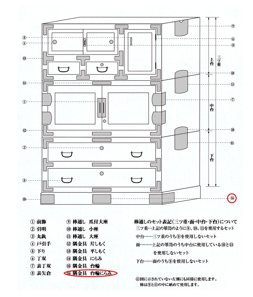 和風箪笥・家具金物メーカーとして名高い「西川商店」ブランドの台輪にらみ。