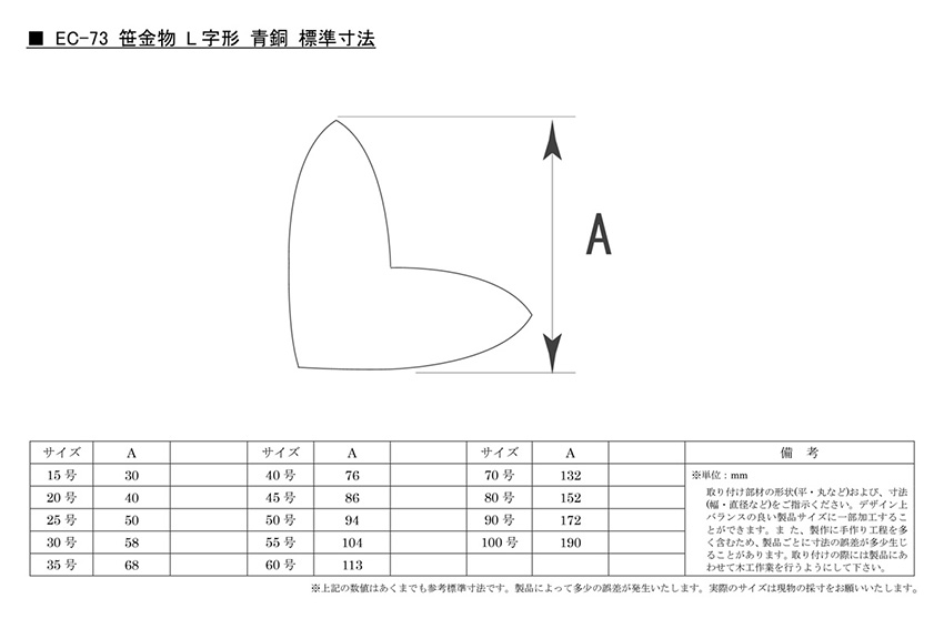EC-73 笹金物 L字形 青銅色焼付塗装 15号