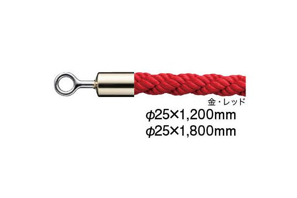 パーティションロープ (リングタイプ) FPR-25R-金・レッド 1200mm