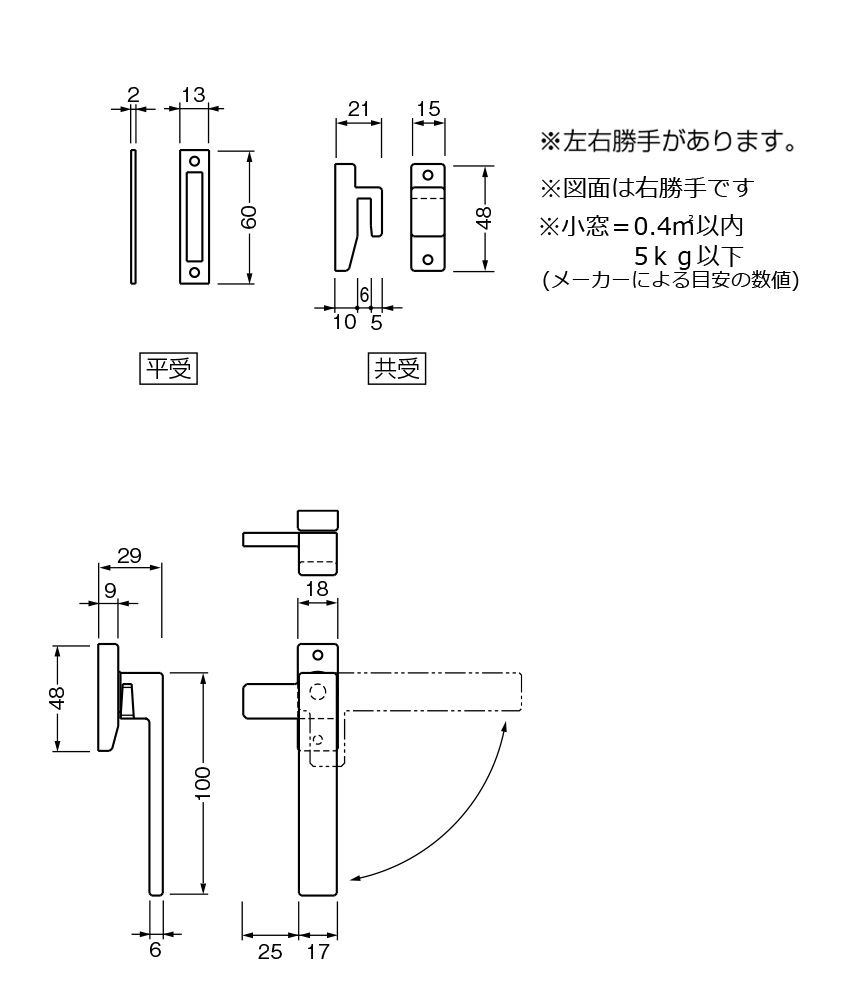No.1485 窓締(左) 黒 (コード1485-8-2)