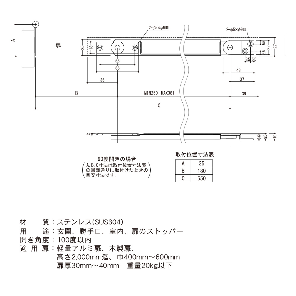 軽量アルミ扉・木製扉(高さ2000mm迄・幅400-600mm・扉厚30-40mm・重量20kg以下)