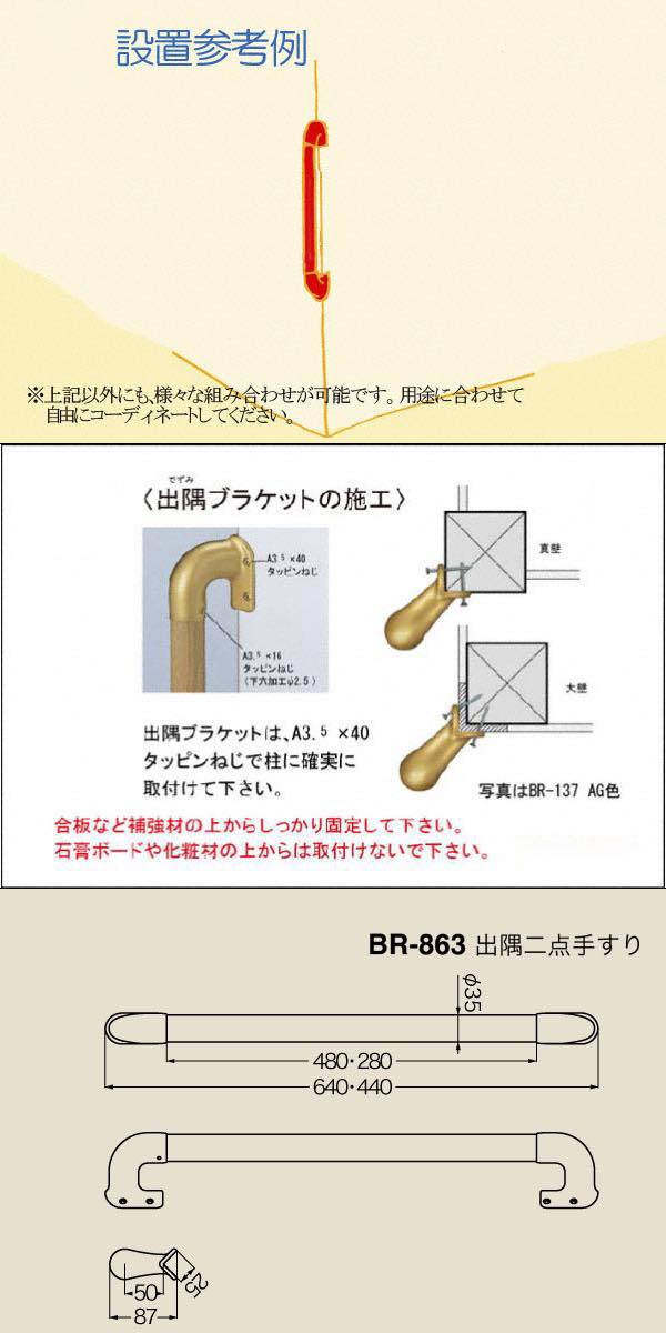 BR-863-AG・ライトオーク 出隅二点手すり 32φ 600