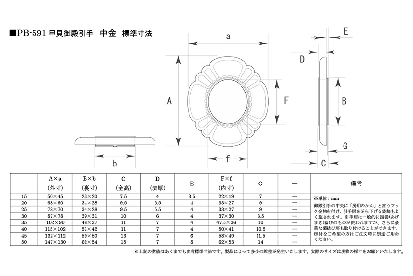 PB-591 甲貝御殿引手 中金 15号(23×20)