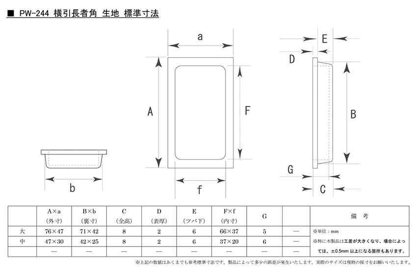 PW-244 横引長者角 白木 生地 大(71×42)