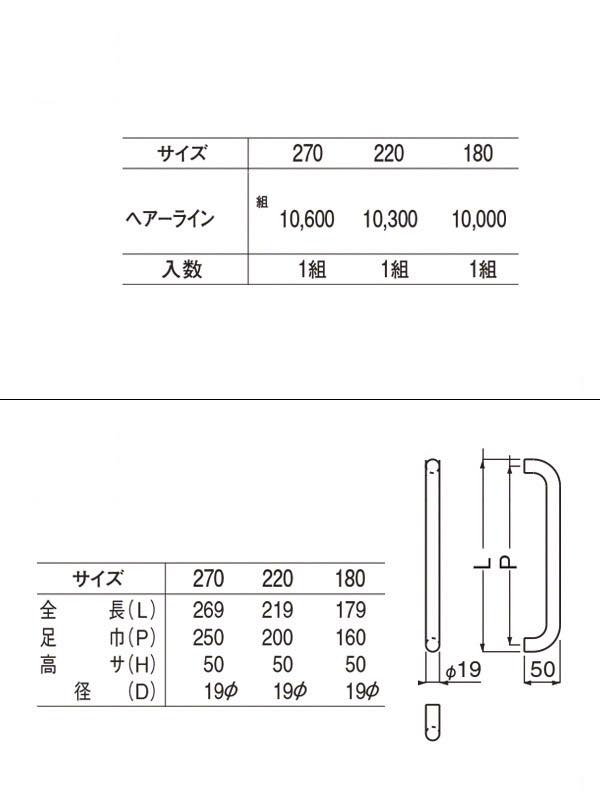 No.175 丸棒取手 (両面用) ヘアーライン 270mm(ピッチ250)