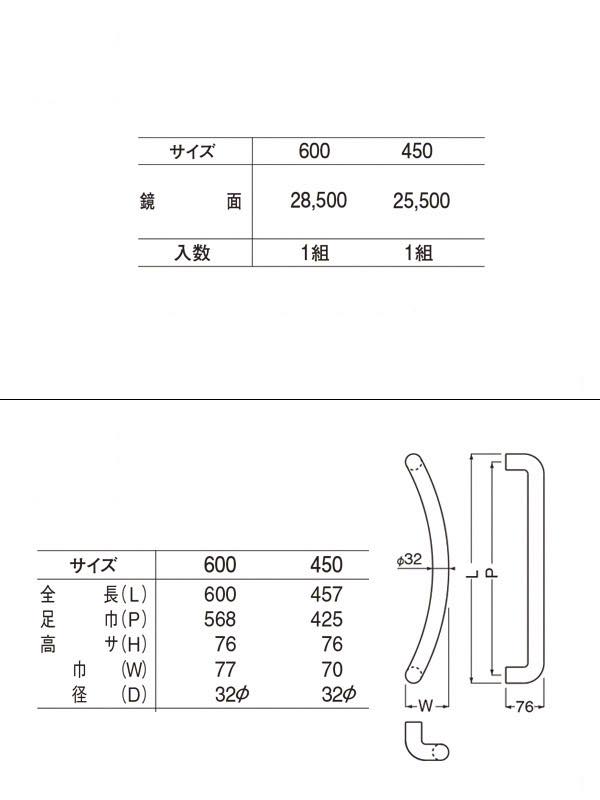 No.163 ステンR形取手 (両面用) 鏡面 600mm(ピッチ568)