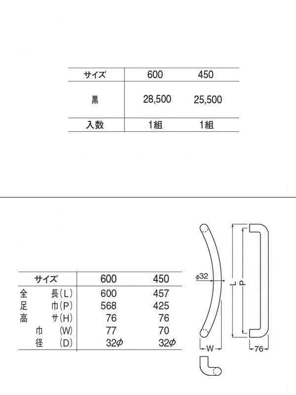 No.163 ステンR形取手 (両面用) 黒 600mm(ピッチ568)