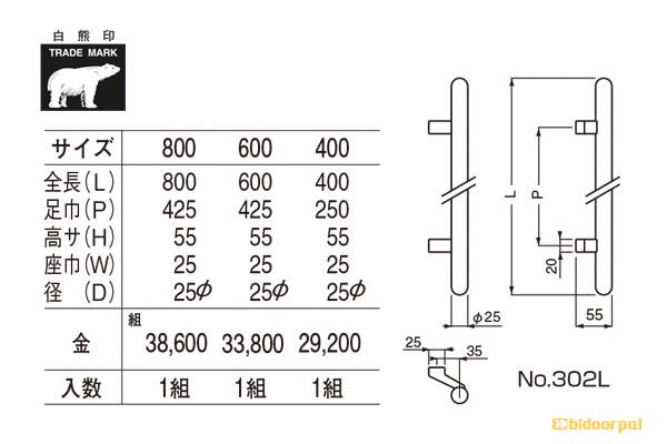 No.302L カプセル取手 (両面用) 金 800mm(ピッチ425)