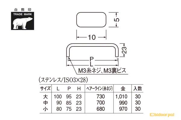 ST-2B ステン角形ハンドル 金 大(ピッチ95)
