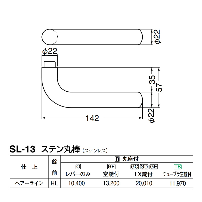 TB空錠付 (SL-13-R-TB-ヘアーライン) | 1 組 | @ 16,280 円 | @ 8,172 円 | ログイン後に表示 | 組 | 標準A |