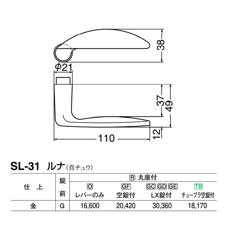 Oレバーのみ (SL-31-R-O-金) | 1 組 | @ 22,770 円 | @ 11,428 円 | ログイン後に表示 | 組 | 標準A |