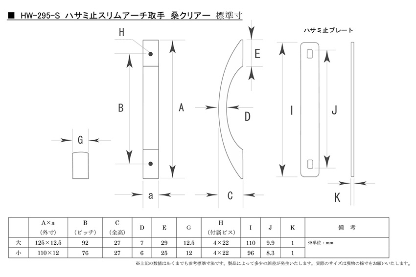 HW-295-S ハサミ止スリムアーチ取手 桑クリアー 大(ピッチ92)